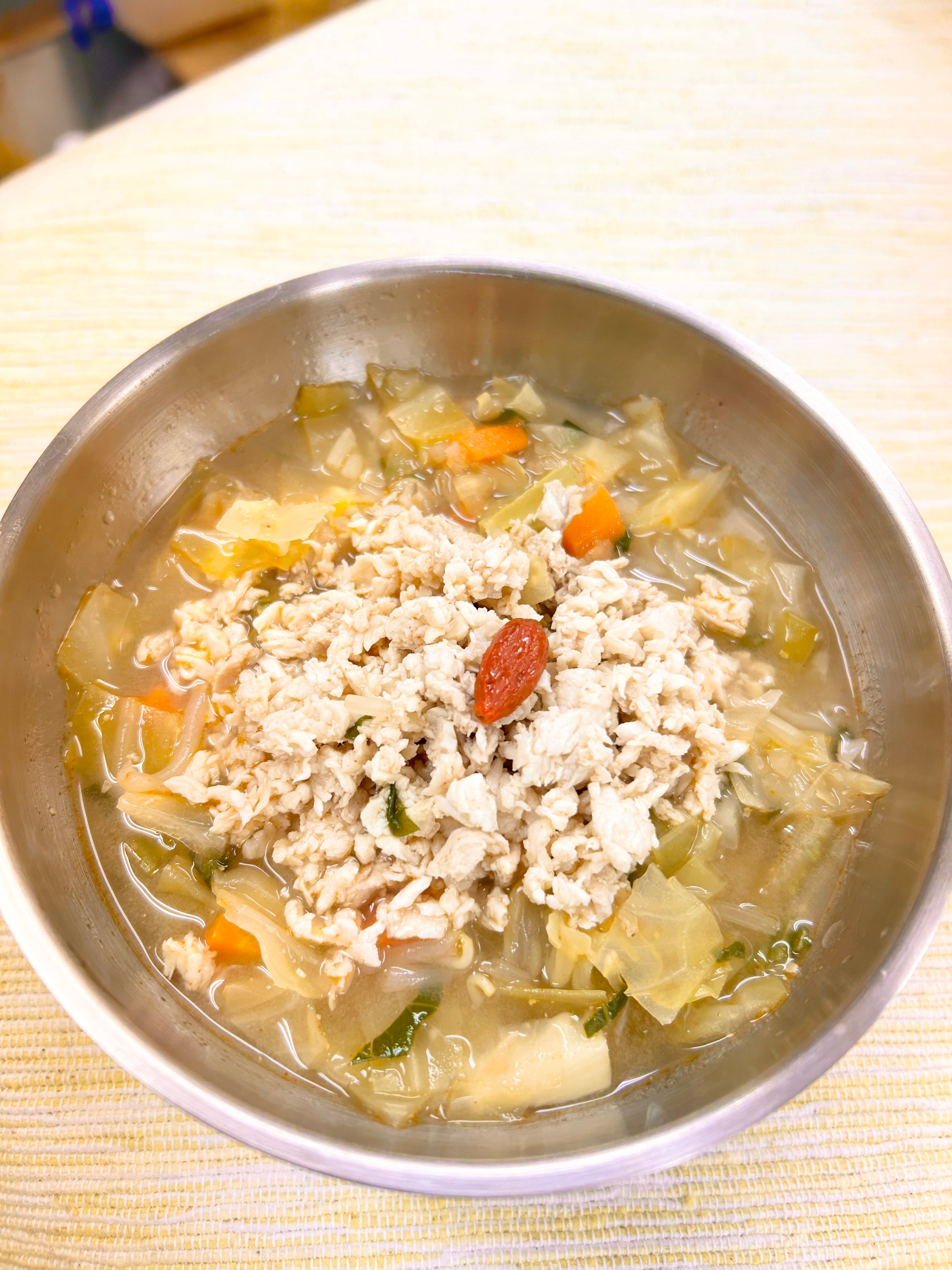 7種の野菜と乾燥の時期にオススメの白木耳も入り、炒めた白ごまと焼き生姜で濃くのある美味しい仕上がれになっています。