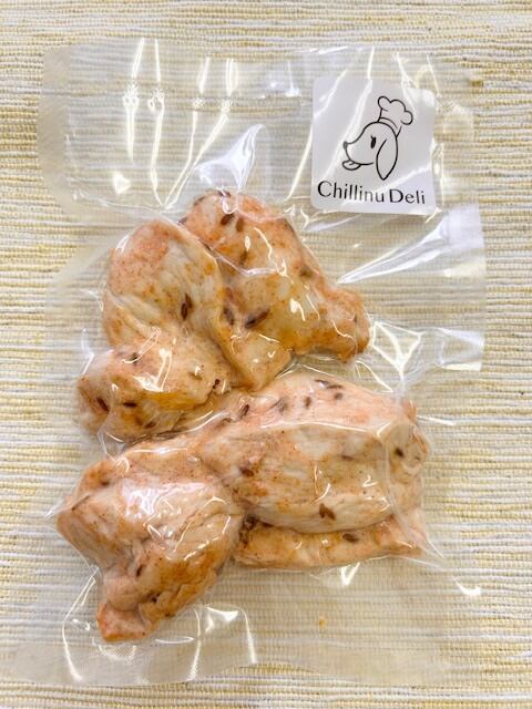 無脂肪のヨーグルトとスパイス(辛味無し)を漬け込んだ、さっぱりとした仕上がりの